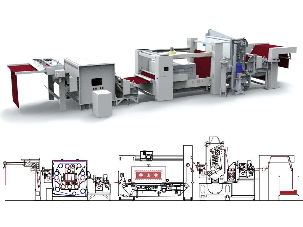In 1999 the concept-machine KD Giant marks an amazing goal with its 1.500 mm decaitising cylinders(!) and the patented roll stocking unit which allow to use up to 4 different technical fabrics on the machine wrapper and molleton types.